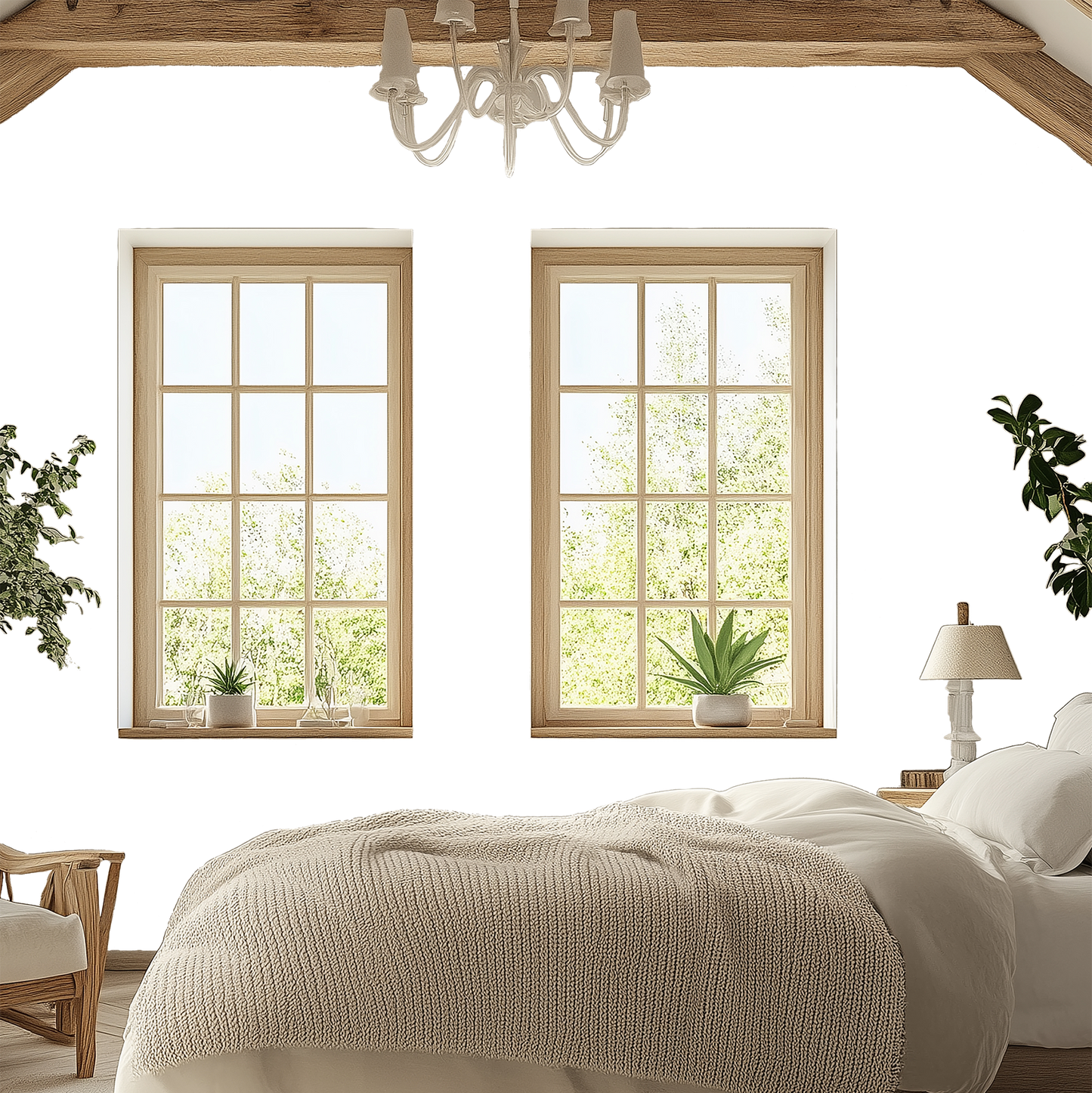The minimalist and neutral Fronde design features hand-drawn leaves to create a beautiful pattern. Its neutral tones make it versatile in any room. Pair with rustic textures and similar colours to enhance the design.